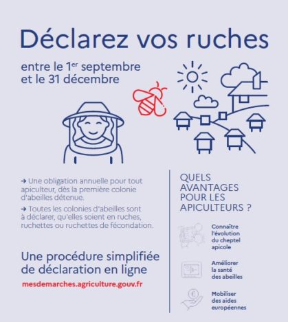 Tout apiculteur, même avec une seule ruche, est en effet tenu de déclarer réglementairement chaque année les ruches dont il est propriétaire ou détenteur, en précisant notamment leur nombre et leur emplacement. La période de déclaration est fixée entre le 1er septembre et le 31 décembre 2021.